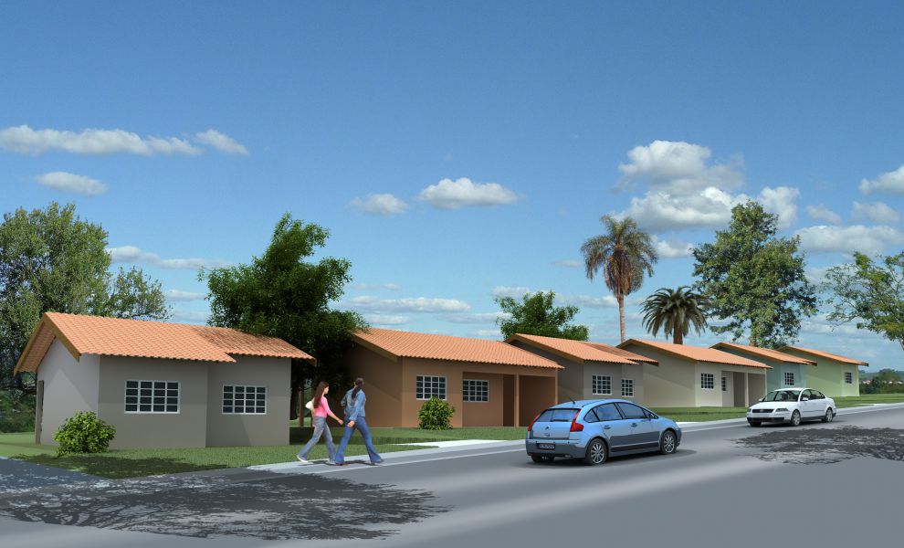 Casas com 2 quartos, sala, cozinha, banheiro e área de serviço.