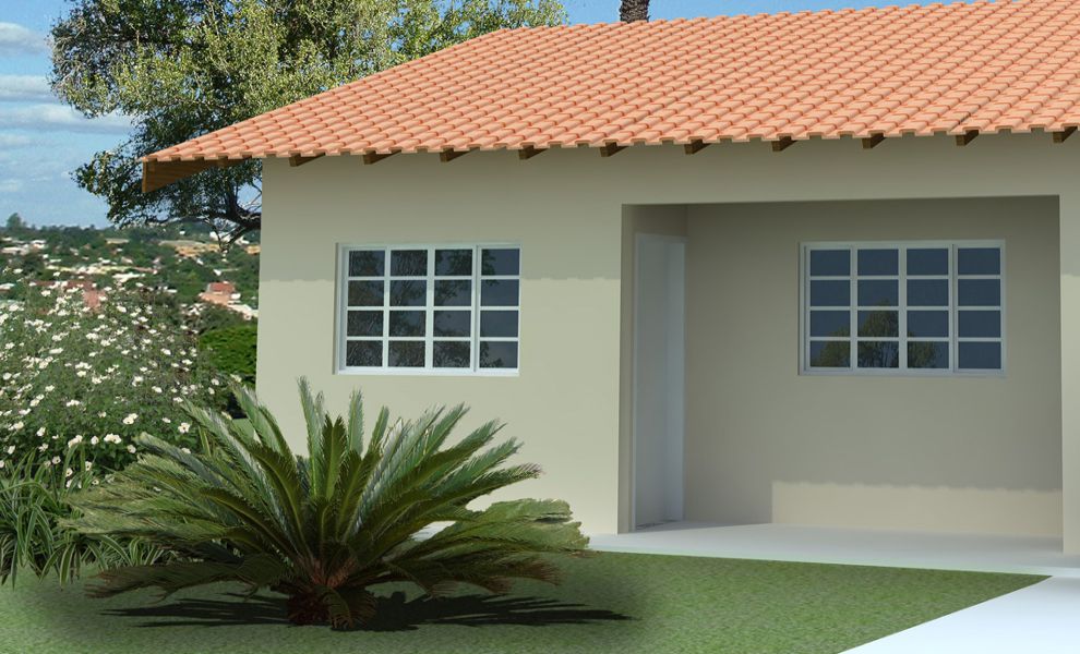 Piso cerâmico em toda casa, azulejo até o teto no banheiro e parede da pia na cozinha, cobertura com telhas cerâmicas e forro em laje.